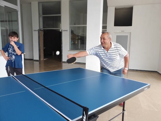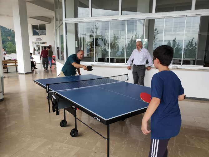 Akçaabatlılar Vakfı Başkanı Yaşar Erbasaran, Koçlu köyünde mahallelinin toplanma ve dinlenme alanına aktivite sağlamak için masa tenisi masası ve spor malzemesi hediye etti.
