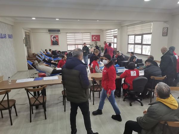 VATANDAŞLARIMIZ KAN BAĞIŞINDA BULUNUYORLAR, YOĞUNLUK OLDUKÇA FAZLA.