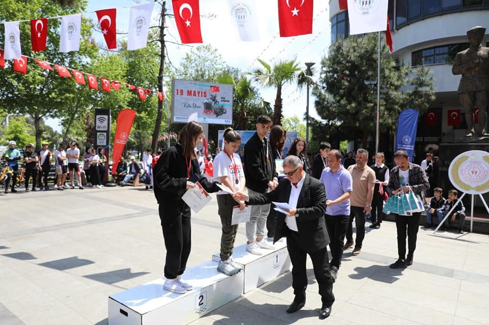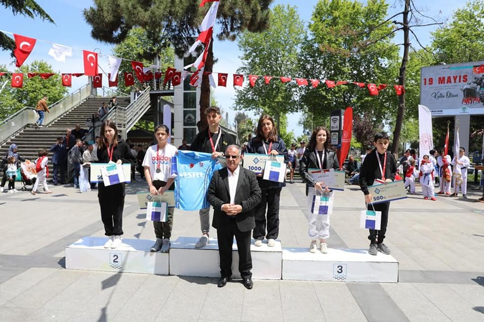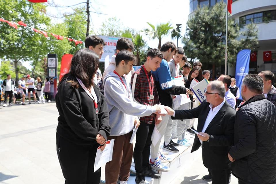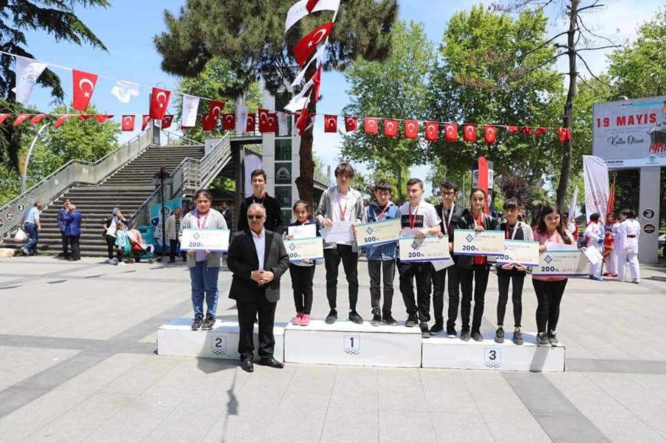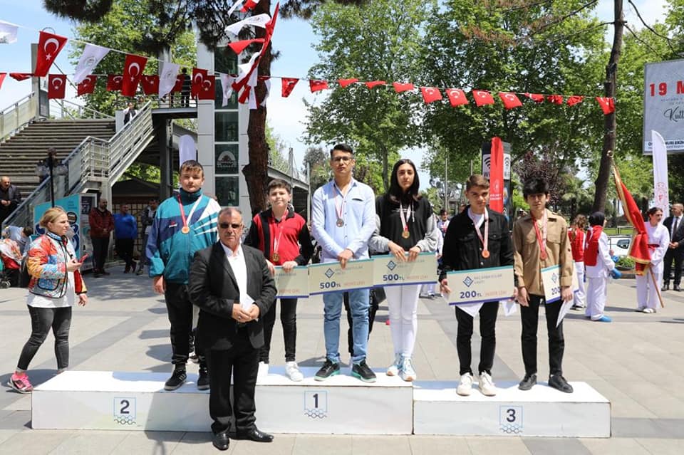 KUTLAMA TÖRENİNDE DERECE SAHİBİ SPORCULARA ÖDÜL VERDİK.